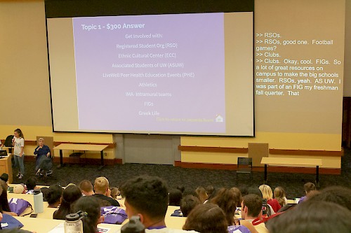 Students and families begin their A&O experience with CART (Communication Access Real-time Translation) captioning services and ASL Interpreters that are included in every key presentation during A&O sessions throughout all programs. Accessible versions of the Husky Guide & Husky Guide Workbook publications are available online with over 300 views. Any A&O participant or guest can find resources they may need at http://fyp.washington.edu/accessibility.