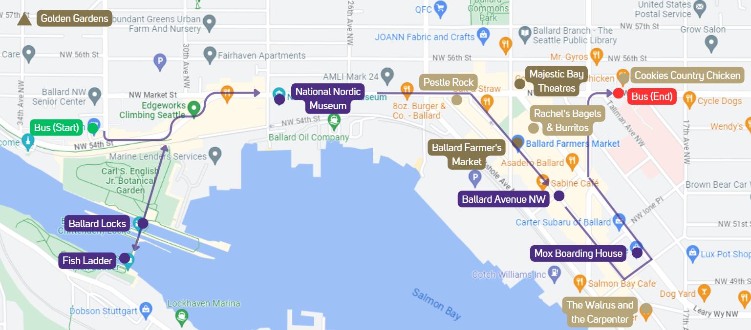 How to get there: Take the 44 bus from 45th St & University Way NE. Get off at NW Market St & Ballard Ave NW.