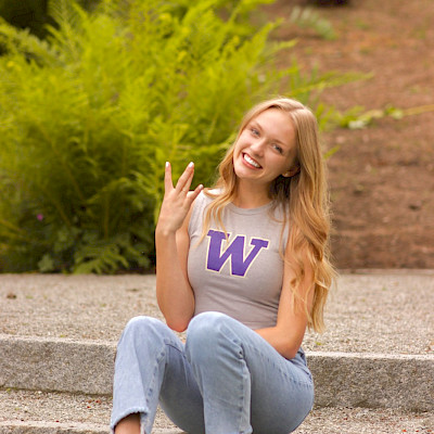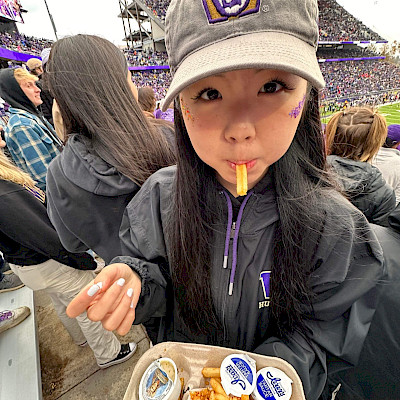 One thing I love about the University of Washington is our football games. Every home game this past season my friends and I got to the stadium early to secure front row seats in the Dawg Pack. There's nothing better than getting all dressed up in purple and gold, going to tailgates, and cheering on the huskies!